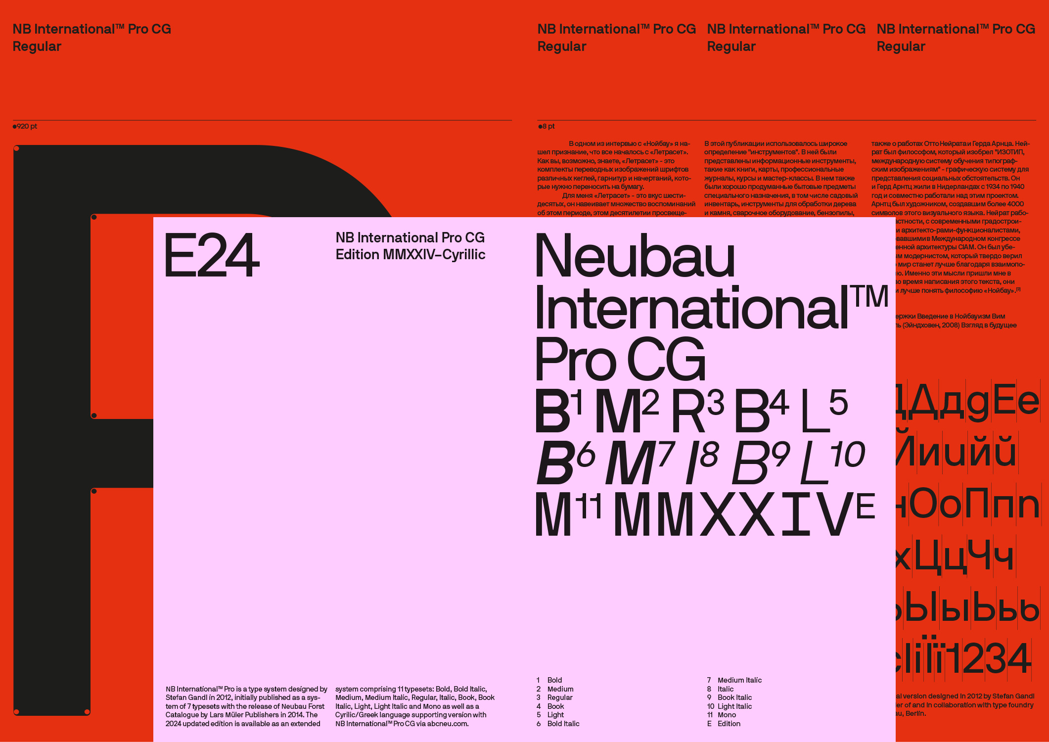 Originally released in 2014 with Neubau Forst Catalogue, NB International™ Pro will be available as a Cyrillic/Greek extended version with NB International™ Pro CG Edition for its ten years anniversary in 2024.